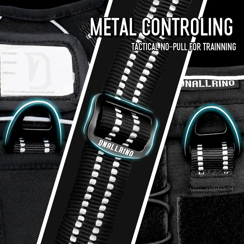 DNALLRINO Tactical Dog Harness for Medium Large Dogs, Black Dog Harness with ID Card, Reflective Hiking Harness for Training Easy Control Dog Vest with Handle