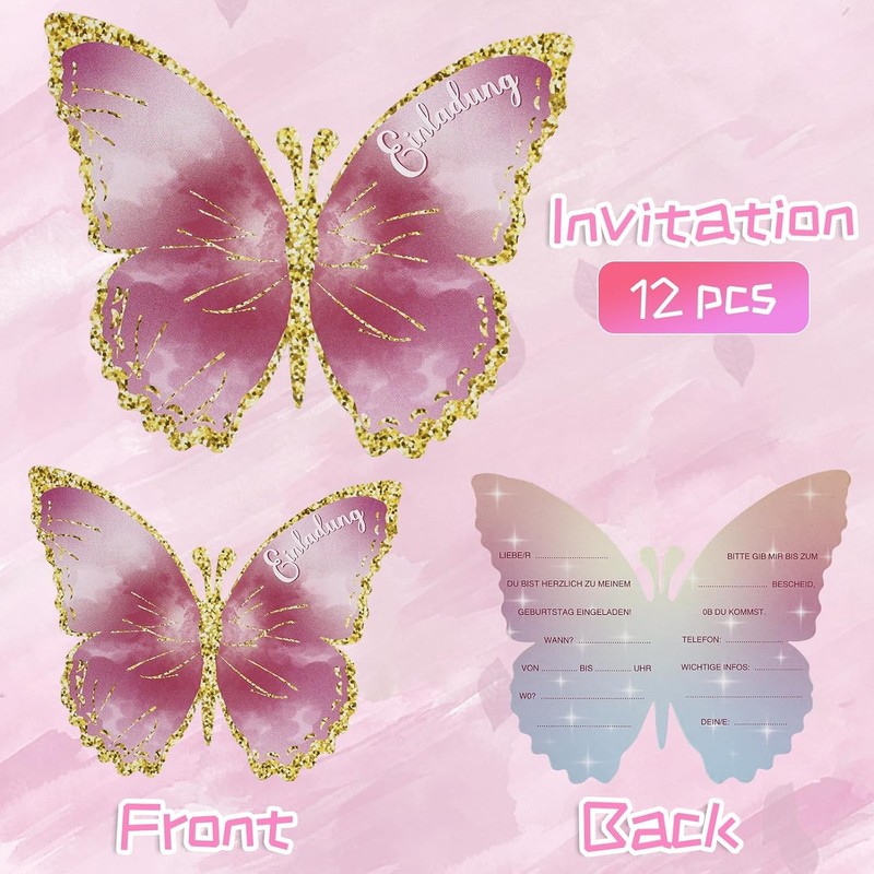 • Butterfly Invitation Cards:Size:4.13 x 4.98 inch, package includes 12 butterfly invitation cards.