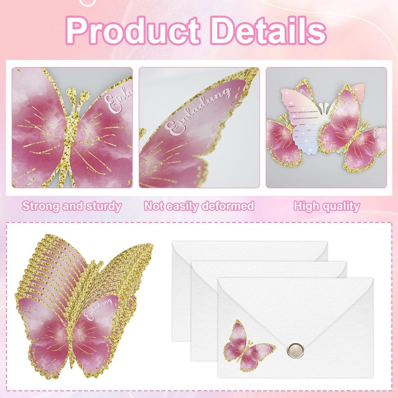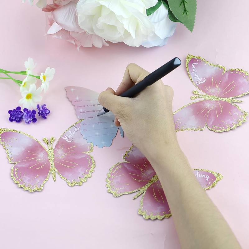 • Easy to Write The front of the invitation has butterfly pattern, on the back you can enter name, time, place, theme and other necessary details.