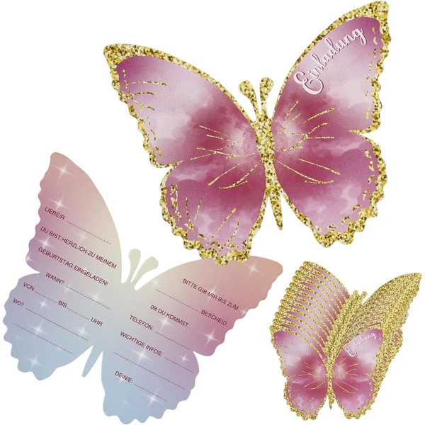DNDGDLUA 12 x Childrens Birthday Invitations Butterfly 12cm x 10cm