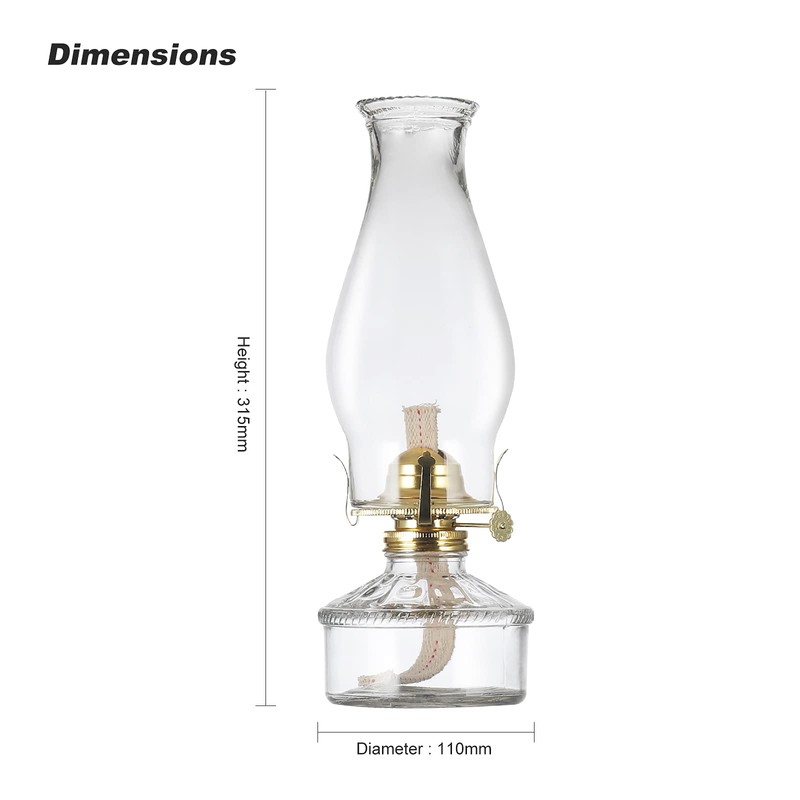 DNRVK - Lámpara clásica de queroseno para uso en interiores, lámpara de aceite de cámara de vidrio transparente grande de 12.5 pulgadas de altura