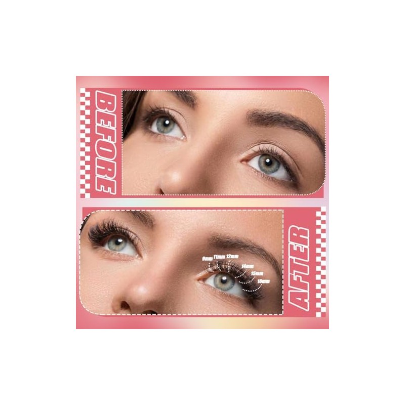 - Superior Quality Cluster Lashes:This cluster eyelash is made of high quality fibers, which are smooth and natural, and can fully blend with your own eyelashes. Due to the slightly different contours of each person's eyes, Individual lashes can be more suitable for each person's situation. There are 6 different sizes of eyelashes in the included eyelash box(30D 40D 50D 60D 80D 100D), according to your needs, which can be used to create different styles of eyelashes.