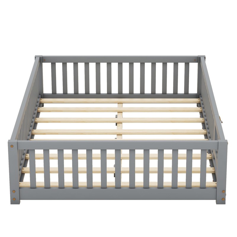 DNYN Full Size Floor Bed for Kids Bedroom,Solid Wood Bedframe w/Door/Safety Guardrails/Wood Slat Support/Easy Assemble/Space Saving Design/No Box Spring Needed, Gray