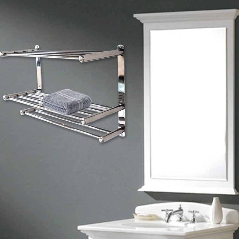 DNYSYSJ 3 Tier Bath Towel Bar Towel Rack, Bath Towel Bar Multilayer Rack Stainless Steel Wall-Mounted Shelf Bathroom Shelf with Towel Bars