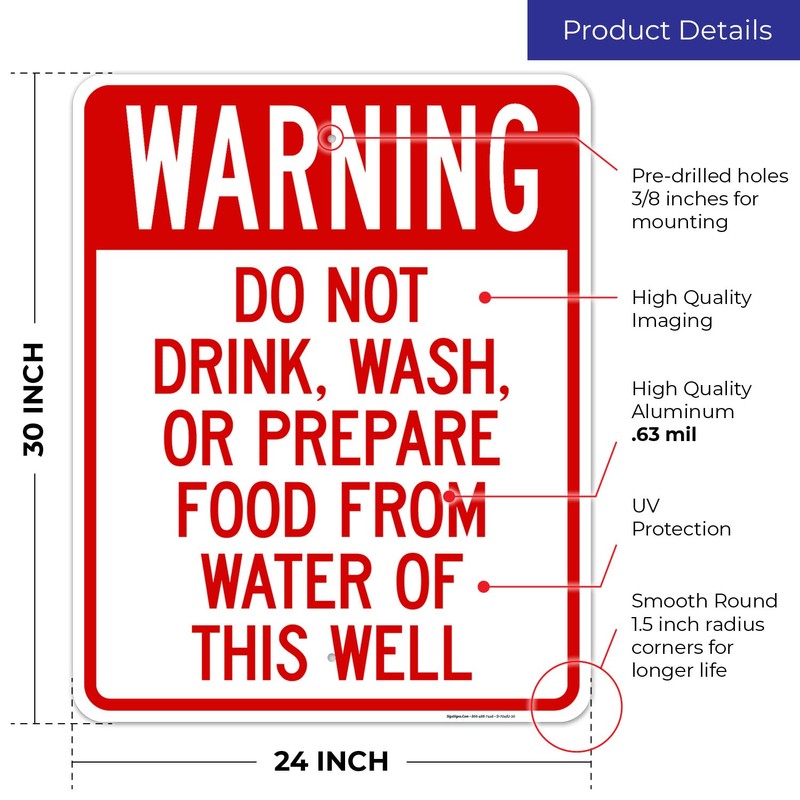 Do Not Drink Wash Or Prepare Food from Water of This Well Sign, 24x30 Inches, Rust Free .063 Aluminum, Fade Resistant, Made in USA