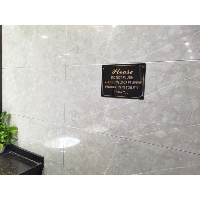 Do Not Flush Paper Towels or Feminine Products in Toilets Sign 10” x 7” Thick Acrylic Self-Adhesive Modern Design Sign, Easy to Install