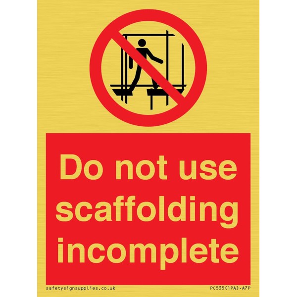 Do not use scaffolding incomplete sign 75mm x 100mm A7P
