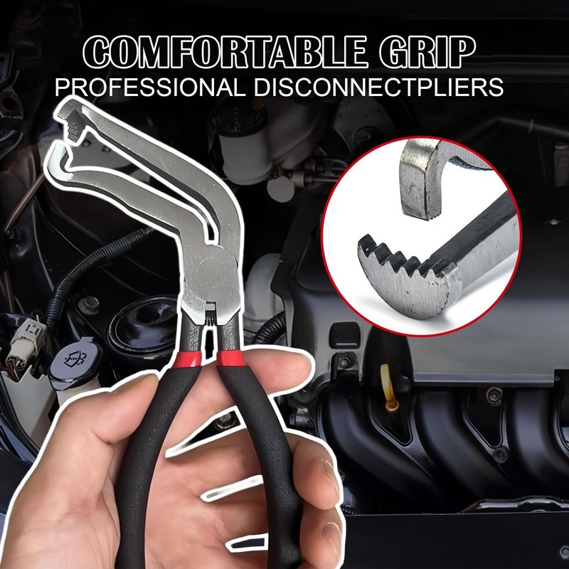 - EASY TO USE - 8 inch automotive tools. First, use the hook at the end of the pliers to pull out the tab to unlock. Secondly, use the point to grab the lash, and then squeeze the tab. Thirdly, pull to separate the connector from the senor. The hose disconnect automotive power tools allow you to use it with one hand.