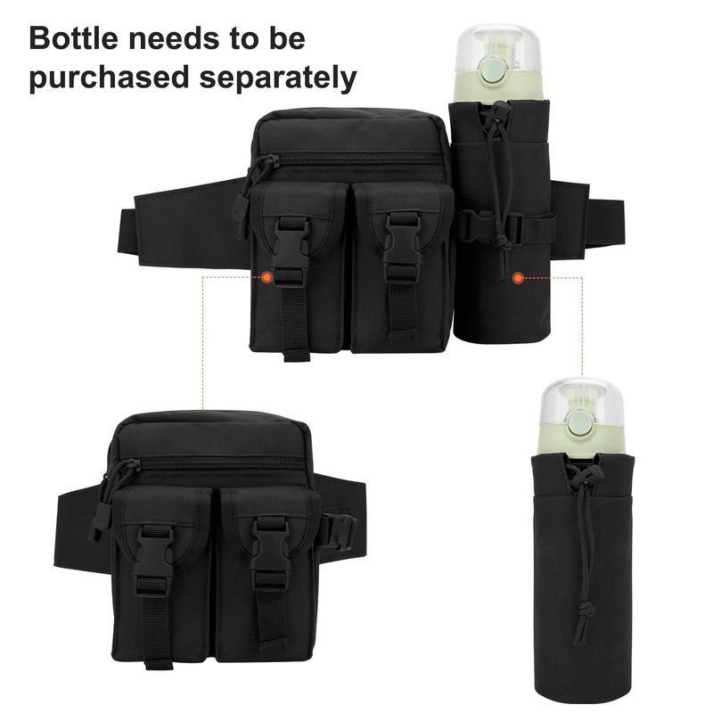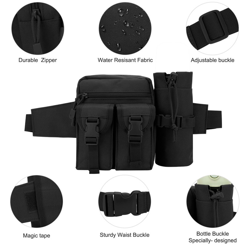 DOB SECHS Hiking Waist Bag with Detachable Water Bottle Holder and Adjustable Waist Belt Oxford Fanny Pack for Men Women Causal Belt Bag for Travel Outdoor Fishing Running Hiking Hunting,Black