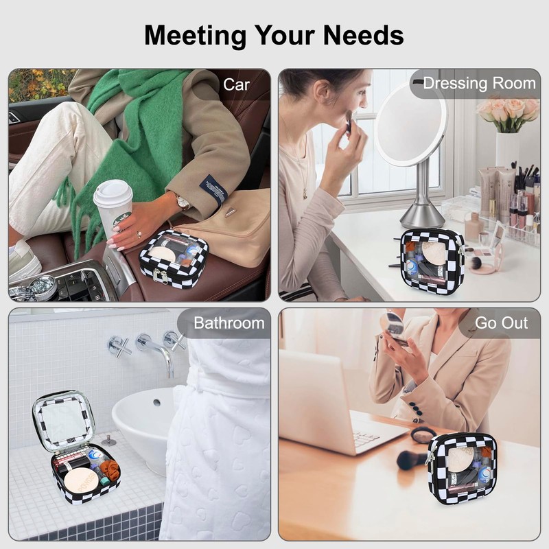 - Mini but Potent - The mini checkered makeup bag measures 5.11'' x 5.51'' x 1.77'' (14cm x 13cm x 4.5cm), The size is measured manually, there may be a little deviation. Please check the size carefully. perfect for holding daily mini essentials