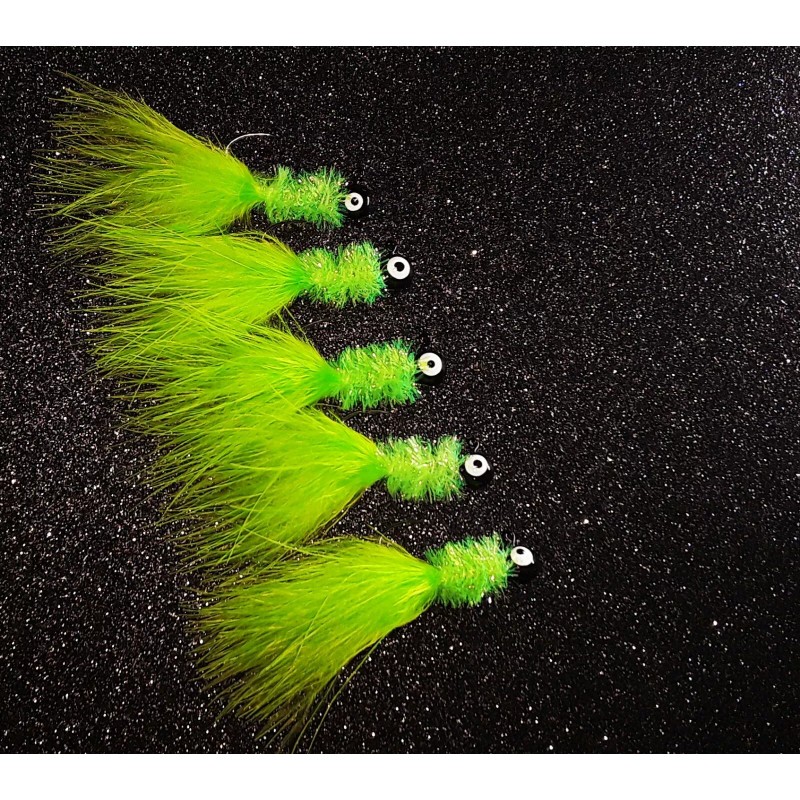 Doc Fishers 5 Chartreuse Cheater Jigs - 1/8 oz for Crappie, Walleye, Bass, Northern