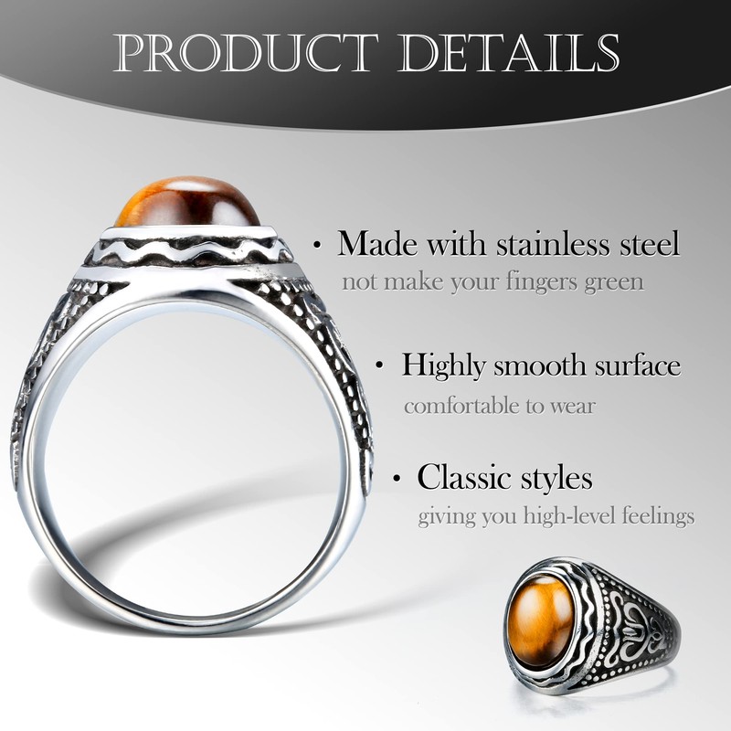 - Cool rings: a unique eye stone ring with wonderful tiger eye stone and highly polished, which looks very shiny and cool. The tiger eye stone has the effect of cleansing your mind, regulating emotions and helps to convert any negative energy into positivity