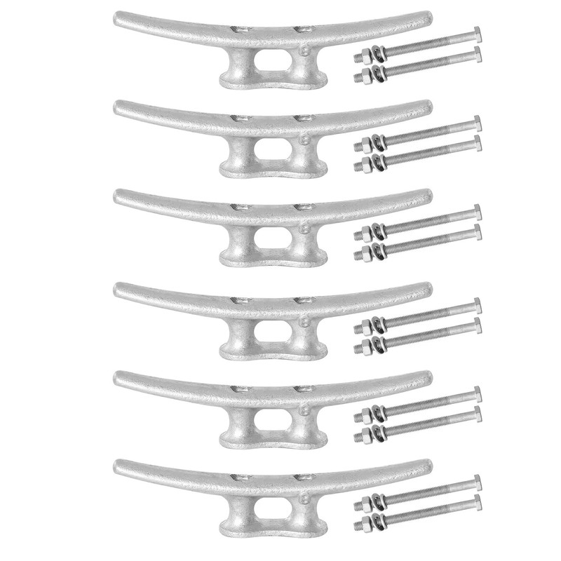 - 【Corrosion Resistance】These Rough Cast Hot Dipped galvanized boat cleats are highly strong and offer excellent protection against rust. The package includes 6 dock boat cleats along with 12 bolts and nuts, making them suitable for both indoor and outdoor use. The galvanized coating on the metal dock cleats provides a strong defense against corrosion. The zinc layer acts as a protective barrier, effectively preventing the formation of rust and corrosion on the underlying metal