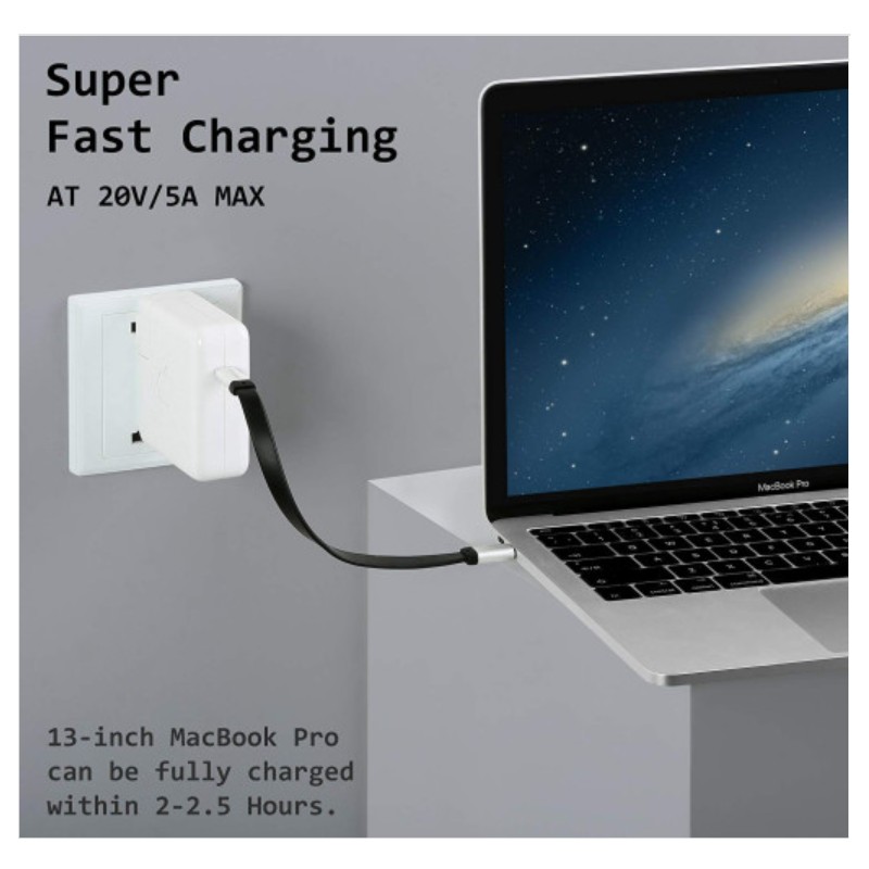 | ** USB-C to USB-C Cable(Thunderbolt 3 Compatible). Fast charging or superspeed syncing between all USB Type-C devices like MacBook(including New MacBook Air 2018), iPad Pro, Chromebook Pixel, Type-C hard drive SSD and smartphones like Huawei P20, Samsung Galaxy S9 S8+ Note 8, LG G7 ThinQ G5 G6 V20 V30 etc. **Latest E-marker Technology, USB-IF Certified: DockCase Type C cable safely deliver up to 100W of power at 20V/5A, 13” MacBook Pro could be fully charged within 2-2.5 hours. The E-mark chip provides a current protection for your laptop or smartphones, delivers a more stable performance for HDMI display.