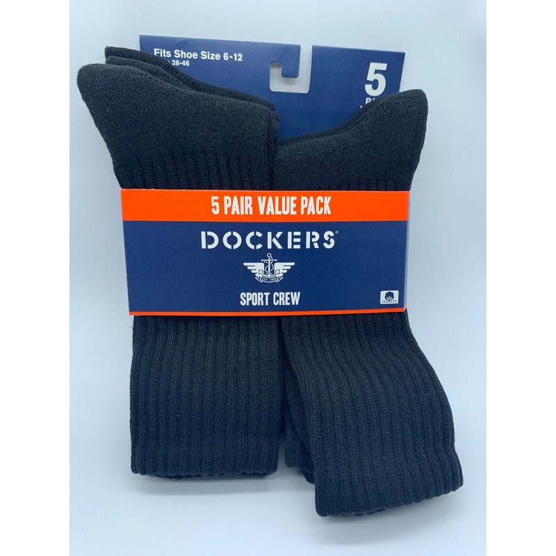 DOCKERS NEW 5 PAIR PACK DOCKERS SMART 360 FLEX MENS SPORT CREW SOCKS BLACK SIZE 6-12