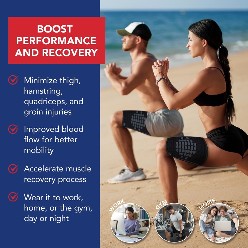 - DEVELOPED BY DOCTORS - Thigh compression sleeve, which stabilizes and supports the quads, hamstring and groin. Facilitating quadriceps and hamstring muscle strengthening by stimulating blood flow and maximizing oxygenation to your muscles.