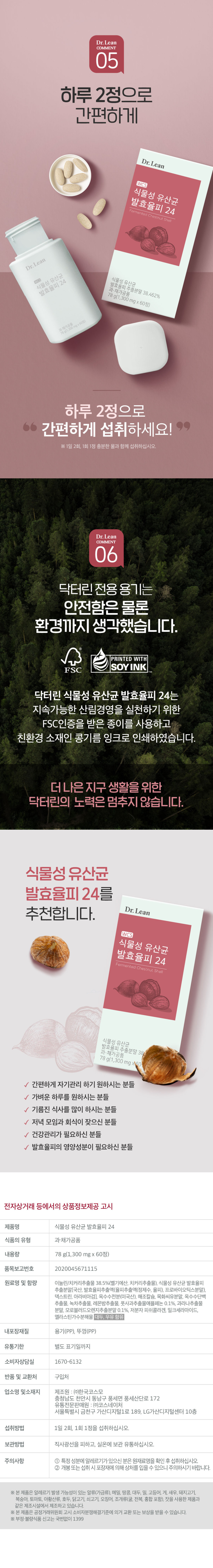 [Doctor Lin] Vegetable lactic acid bacteria fermented bark 24 x 3 boxes (180 tablets)/fermented bark extract powder 1000mg / [닥터린] 식물성 유산균 발효율피 24 x 3박스(180정)/발효율피추출분말 1000mg