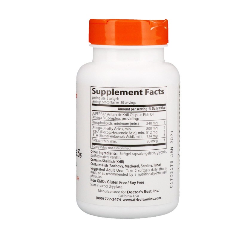Doctor's Best Enhanced Superba Krill Plus with Omega 3s, 60 Count