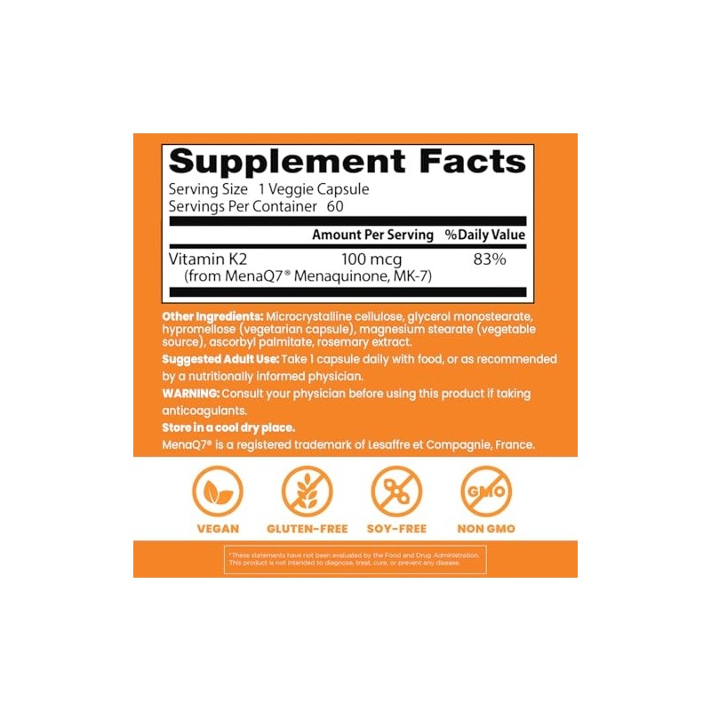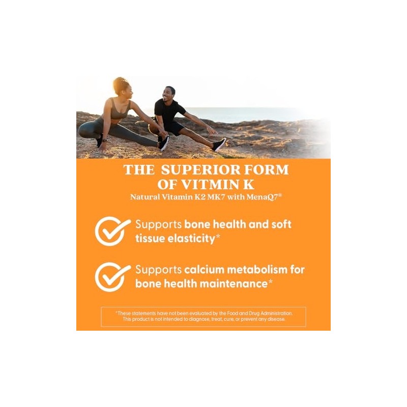 Natural vitamin K2 MK-7 with Menaq7 provides the superior form of vitamin K for optimum bioavailability and delivery to the body. Vitamin K isn’ T one vitamin, it’ S A family of fat-soluble vitamins with similar chemical structures but different metabolic properties. K2 belongs to a group of vitamin K compounds called Menaquinone, which show greater bioactivity when compared to K1, the ordinary supplemental form. K2 is absorbed more completely, remains in the body longer and delivers more benefits for bones, blood vessels and other soft tissues.*