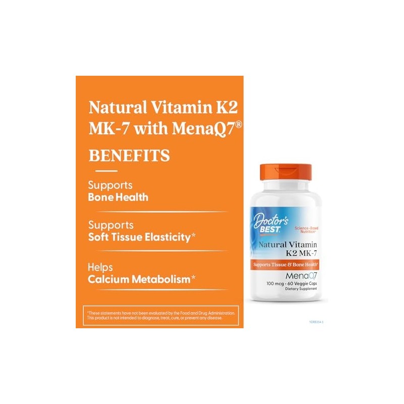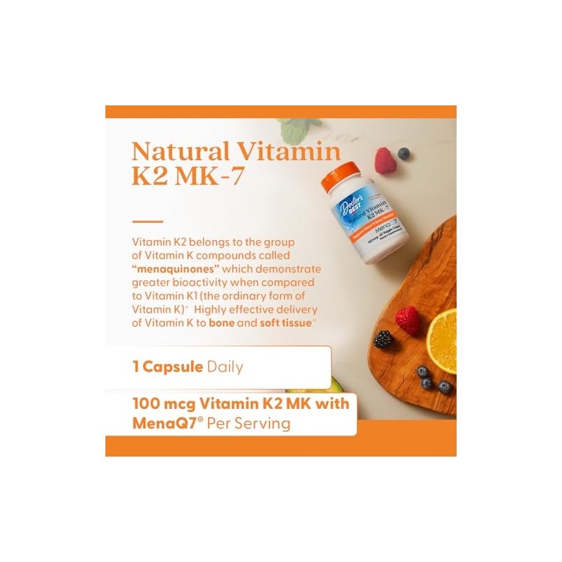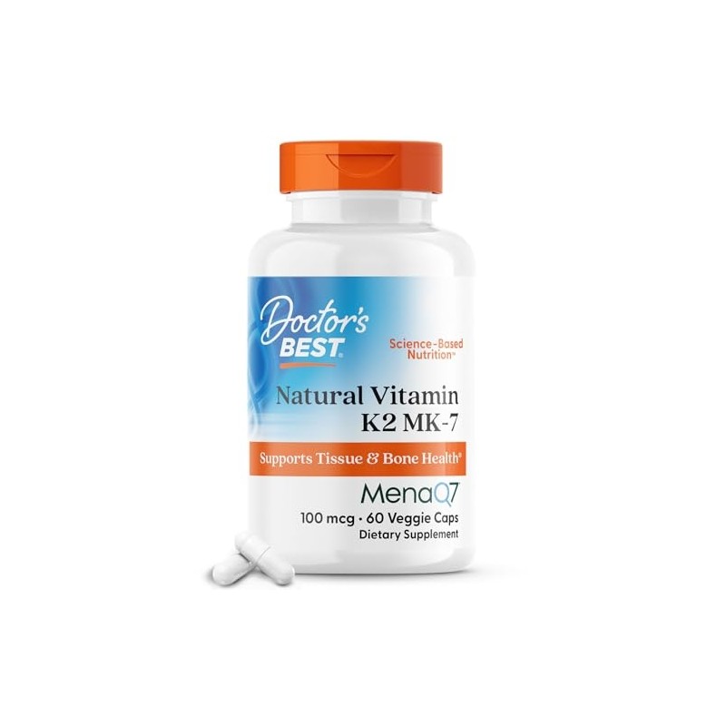 Doctor's Best Natural Vitamin K2 Mk-7 with MenaQ7, 100mcg Vitamin K2 Supplement Supports Bone Health, Non-GMO, 60 Veggie Capsules