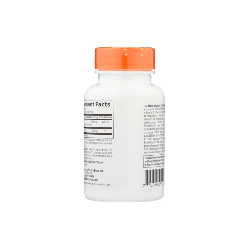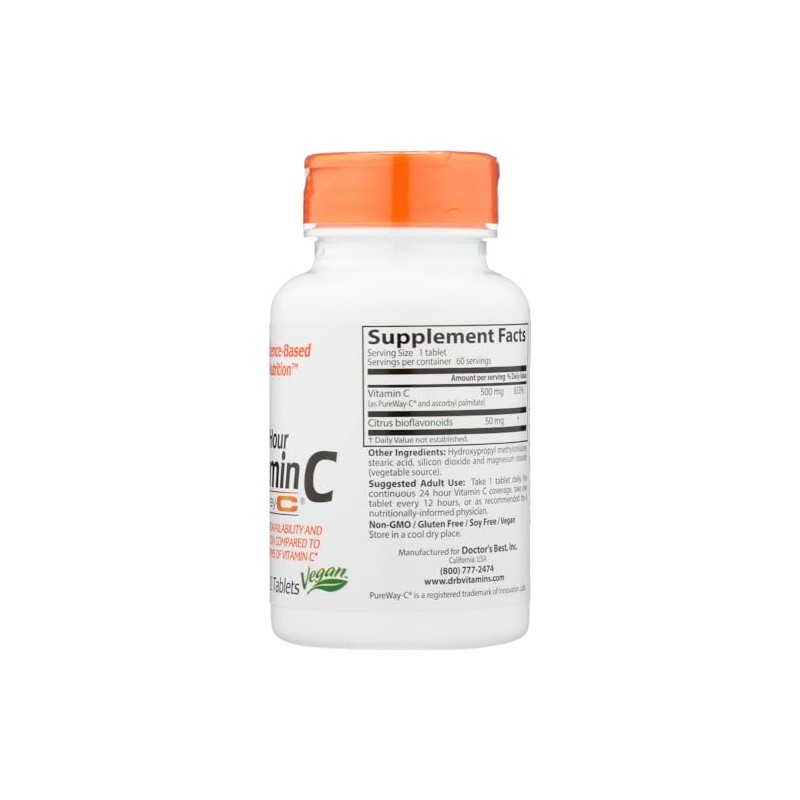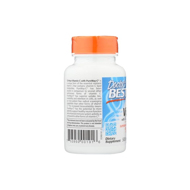 Doctor's Best Sustained Release Vitamin C with PureWay-C is a unique formula that supports the body's immune and antioxidant systems.*It contains PureWay-C, a unique form of vitamin C that contains vitamin C-lipid metabolites that provides superior uptake, bioavailability and retention in cells, and is a more potent free radical scavenger than several other forms of vitamin C.*The increased bioavailability from PureWay-C means this formula has a greater potential than other forms of vitamin C to help support healthy neuron function and enhanced immune system activity.*