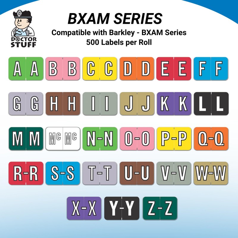 - PERFECTLY ORGANIZED: Doctor Stuff is a leading supplier of folder supplies and our labels are printed with bright colors to match the Barkley and Sycom BXAM Series alpha labels. They have a clear laminate to keep your labels clean and the colors bright - even with frequent handling.