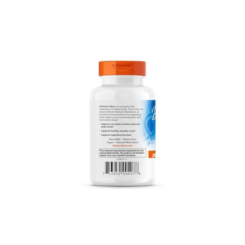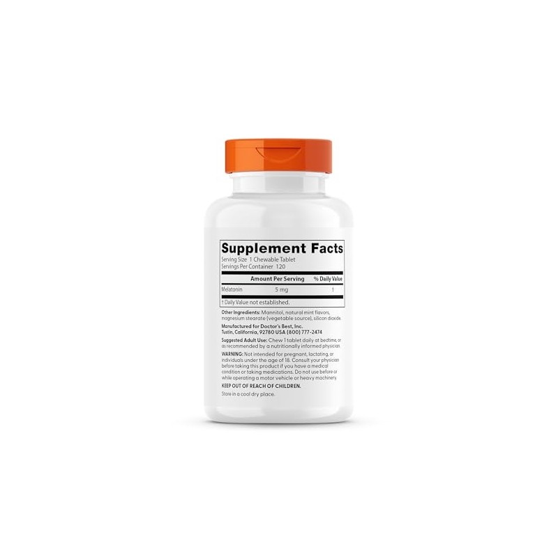 Doctor's Best Chewable melatonin provides a supplemental source of melatonin to support the maintenance of sleep patterns that are in sync with both the demands of our daily schedules and the circadian rhythms largely dictated by our biological clock. Melatonin is a hormone that is secreted by the pineal gland to regulate sleep in response to light and darkness and is regulated by the body's master internal clock. Our melatonin levels begin to drop at around age 35-40, gradually declining so that by the time We are in our 70s, our nighttime melatonin levels are often similar to daytime levels. Melatonin may be effective in helping to shift the biological clock's adjustment to new time zones, E.G. Recovery from Jet lag, or to adjust to new sleep schedules.