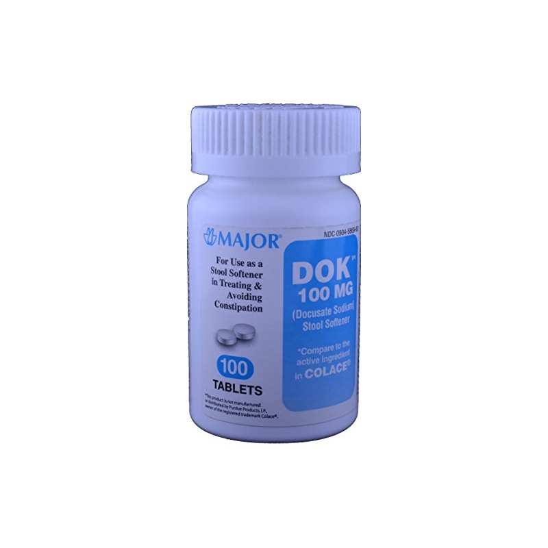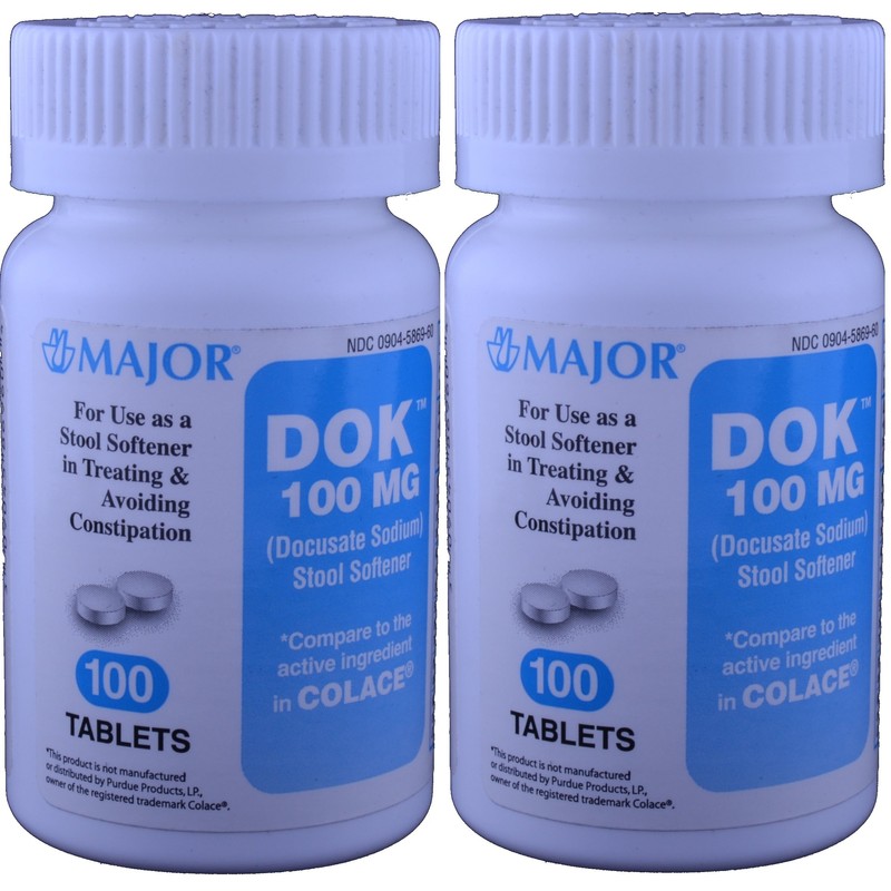 Docucate Sodium 100 mg Crushable Tablets for Gentle, Reliable Relief from Occasional Constipation Generic for Colace Crushable 100 Tablets per Bottle Pack of 2 Bottles Total 200 Tablets