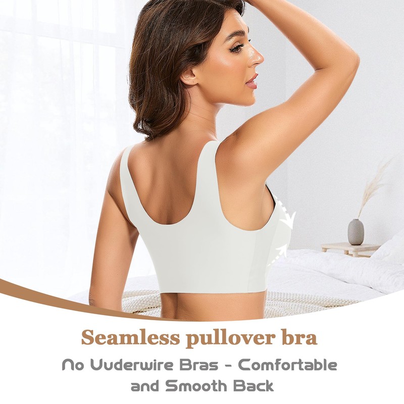 • 【Smooth Back Pullover Bra】 Beautiful women's no-underwire bra with excellent comfort; The bra design changes the traditional button up bra, adopting a pullover style, and the bra will not make you feel squeezed. Thin mesh also has a high-quality appearance, equipped with breathable chest pads to prevent stuffiness; The wide shoulder straps and high elasticity bra provide good support and styling for daily wear