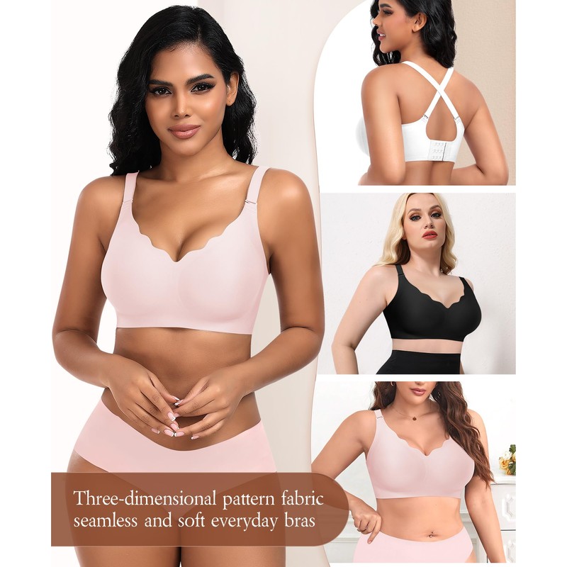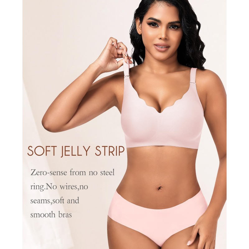 - 【More Attractive Unique Scalloped Design】 The seamless bra is designed with V neck chest scalloped cut,W-shaped design,3D cup support,the scalloped cut allows your chest to be wrapped in bra like a flower bud,beautiful and comfortable. Our bras can provide you with good support and prevent your breasts from sagging. Soft silicone support on both sides, hidden auxiliary breasts,which perfectly show your chest shape.