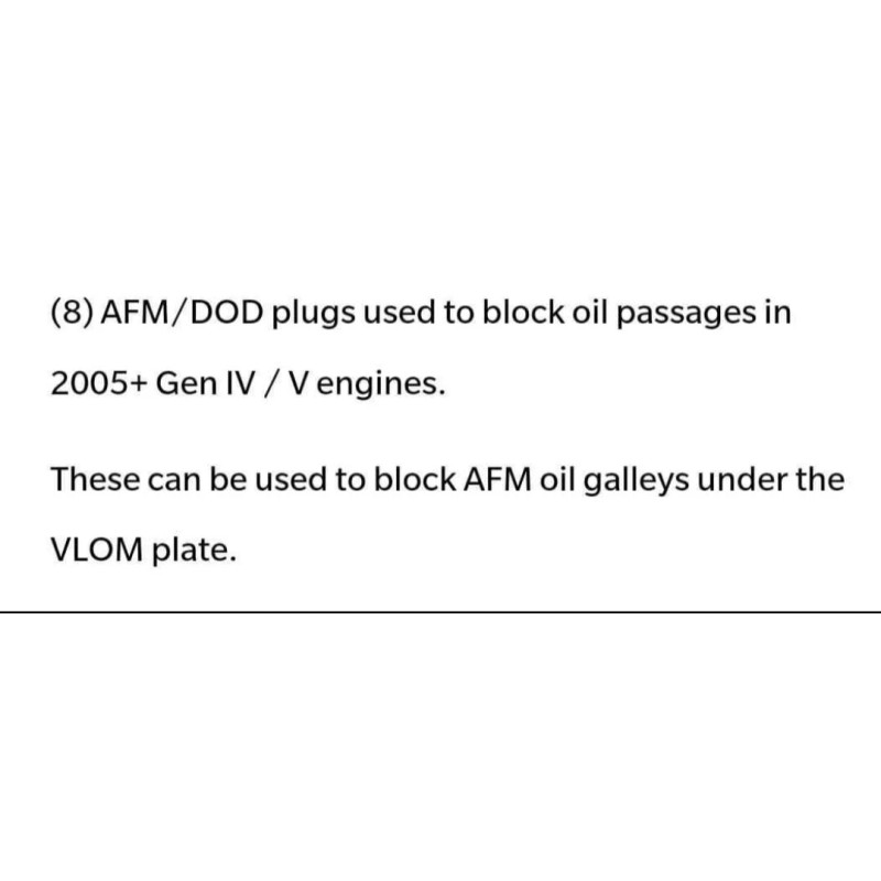 2005 up gen iv engines blocks afm oil galleys under the vlom plate . Insure better oil pressure ...tapperd plugs tap in no drilling , which is perfect for in car dod afm deletes !