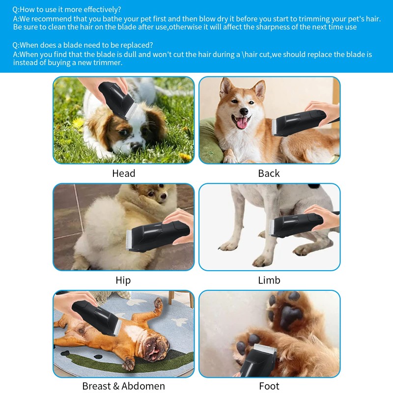- 🐶🐱【Materials】:Comb blade 440C Stainless-steel,Shear blade Titanium-coating Ceramic,Blade sharp and strong hardness, water will not rust.It is more heat resistant than traditional carbon steel process and has less noise when used