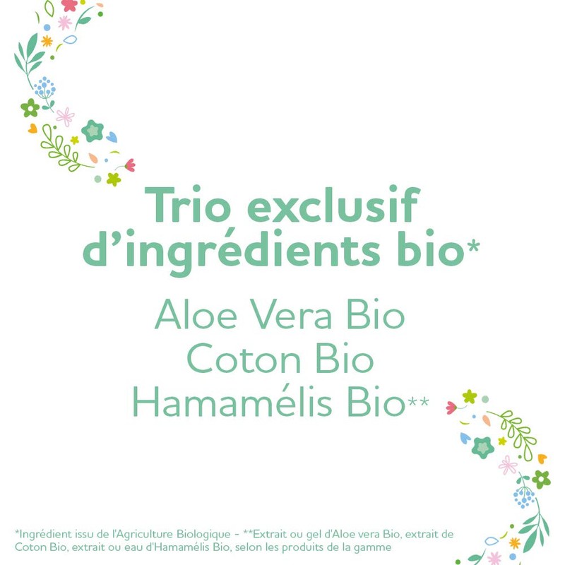 - 3 exclusive organic ingredients*: organic aloe vera extract* + organic cotton extract* + organic witch hazel water** from organic farming