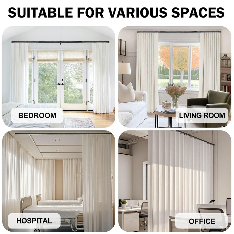 • Wide Application:DOEIEZ ceiling and wall mounted curtain track includes hooks for hanging many types of curtains,such as room divider curtains, grommet curtains or pinch pleated curtains,ideal for living room, office, school, hospital,RV privacy