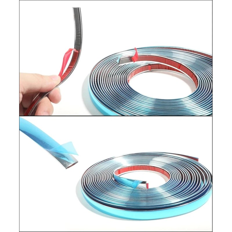 - [High Quality]: Chrome tape made of durable soft PVC, chrome-plated surface and comes with self-adhesive tape, strong adhesion, good strength and corrosion resistance. Note that there is a layer of blue film, which needs to be torn off to see the original color.