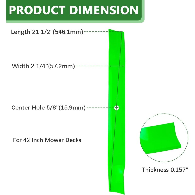 - Specifications: Blade Length 21 1/2 Inches; Width 2.25 Inches; Thickness 0.157 Inch; Center Hole 5/8 Inch. Including 2 packs of blades