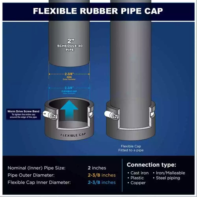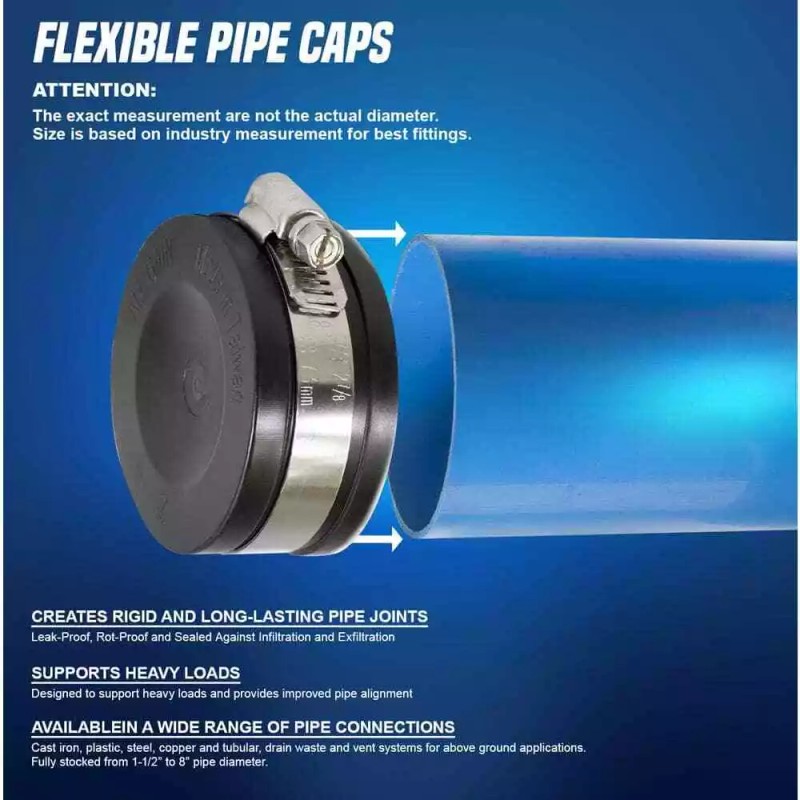 2 In. Pvc Flexible Pipe Cap with Stainless Steel Clamps