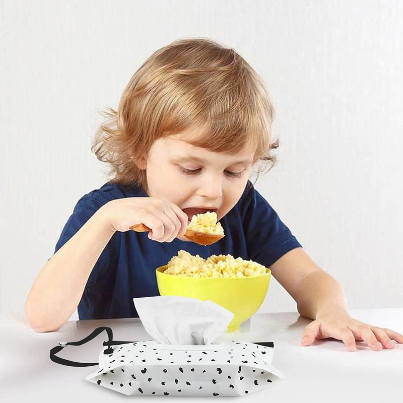 There is a wristband on the left side of the wipes dispenser, which makes the wipes dispenser easy to hang, very portable, you can hang it on the stroller, bedside, diaper bag, car and hand, suitable for both outdoor and travel use. Our wipe bags are ideal for mothers, children and the elderly.