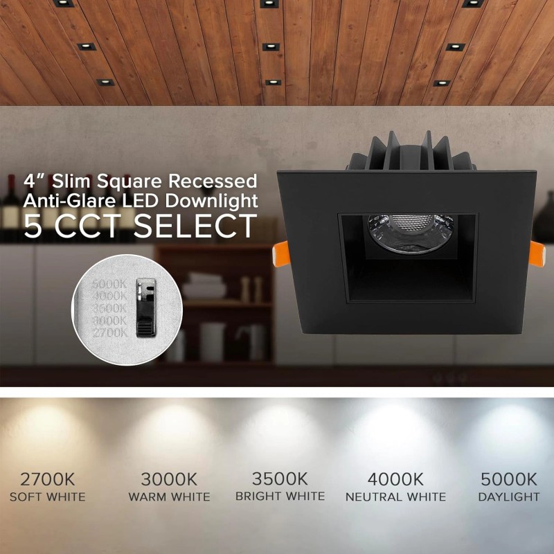 4 in. Slim Square Recessed Anti-Glare LED Downlight, Black