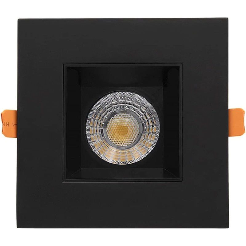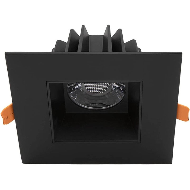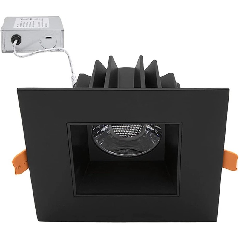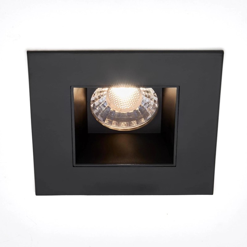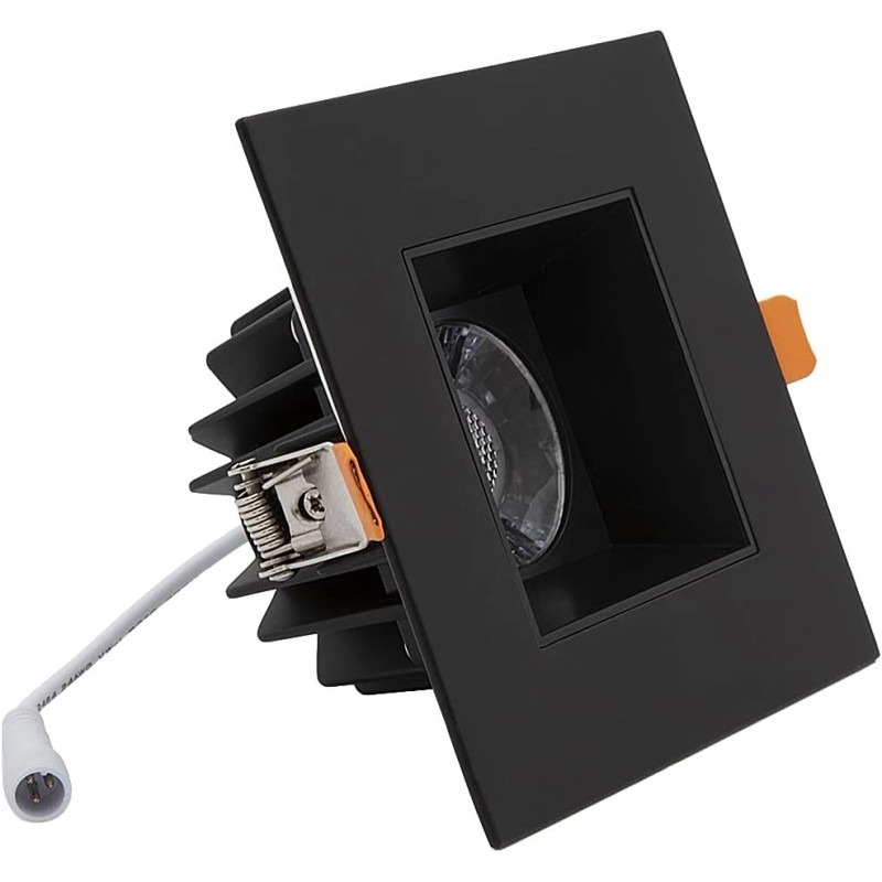 This square anti-glare slim LED downlight features a black trim, a deep recess, and a smooth inner baffle. It is a designer trim kit that blends in with most ceilings, creating a clean sleek look.