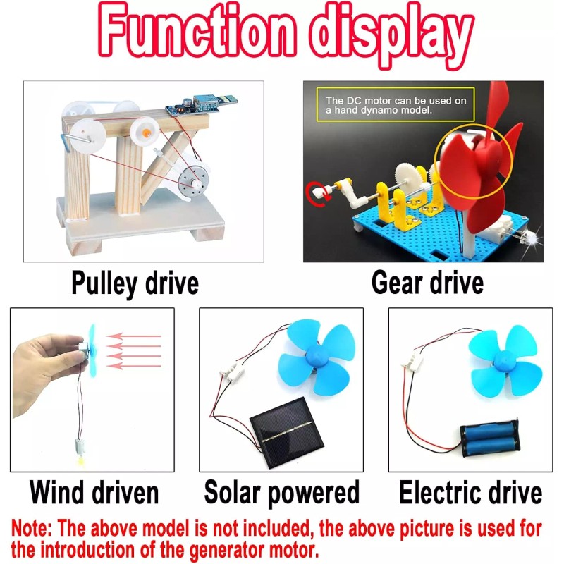 Great fun Motor,perfect for mini fan,electric toys and science experiments etc.You can use it to build a micro motor wind turbine generator or Wind Turbine Generator.Ages 8 and up.