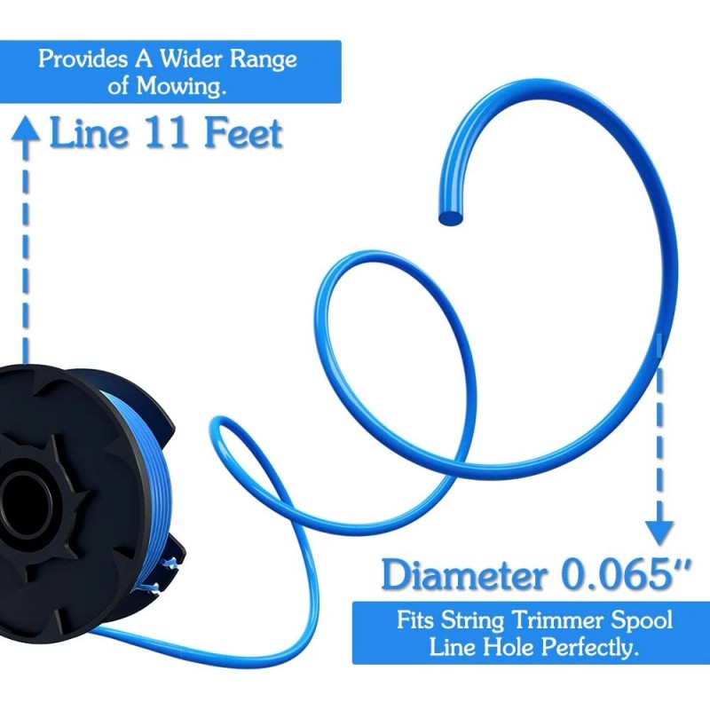 - Full Set: This weed wacker line replacement set comprises 8 Spools & 1 Cap, providing 11 feet of twisted line in each spool.