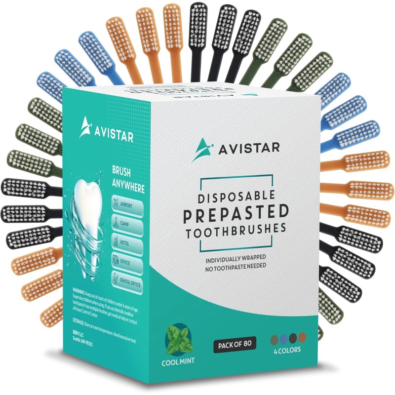 - CONVENIENT PRE PASTED DISPOSABLE TOOTHBRUSHES: Save time and effort with our prepasted disposable toothbrushes that come ready-to-use. Perfect for travel, AirBnBs or guest use, hotel, and camping. Avistar toothbrushes with toothpaste built in ensure you always have a fresh brushing experience on hand.