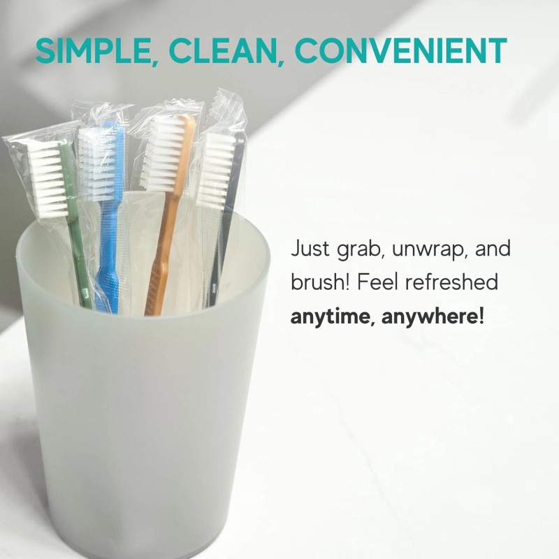 - HYGIENIC AND INDIVIDUALLY WRAPPED: Each pre pasted toothbrush is individually wrapped for maximum cleanliness and hygiene. Whether you're on the go or offering to guests, these prepasted toothbrushes individually wrapped provide a clean, safe brushing solution.