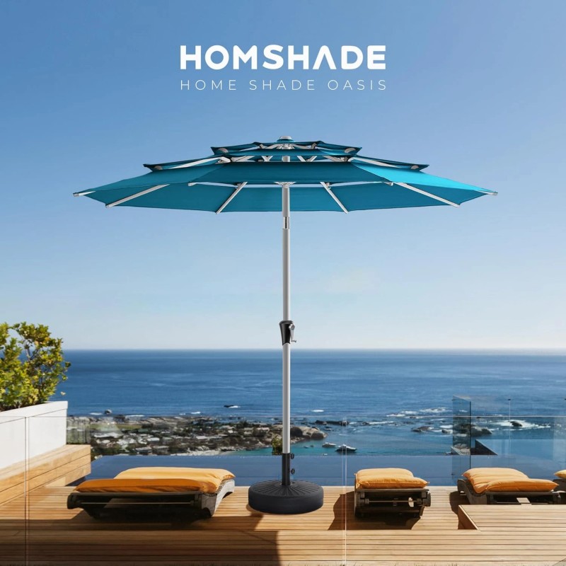 - NICE OUTDOOR OUTLOOK: HOMSHADE 9ft classic patio umbrella can greatly add color, cool shade, and cozy atmosphere to your patio and outdoor creative spaces. Suitable for a variety of outdoor environments such as patios, gardens, pools, decks, backyards, and so on. Overall dimensions: 9' (diameter) x 8.8" (height)