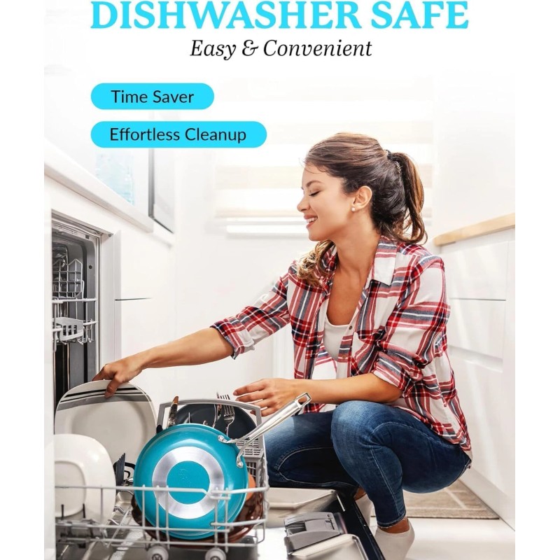 - Effortless Cleanup, Dishwasher Safe: Spend less time with cleanup! After all the cooking and prepping is done, place cookware in the dishwasher for quick and easy cleanup.
