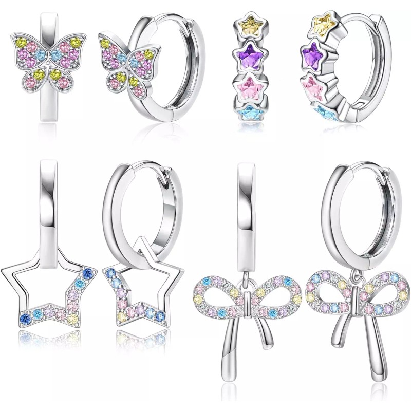 Combine un diseño elegante y elementos amigables con la piel en nuestro juego de aretes de plata BESTEEL para crear el accesorio perfecto. Este conjunto está diseñado para niñas y mujeres, cada par de aretes son cómodos y seguros al usarlos. Para aquellos que prefieren un poco más de brillo, ofrecemos aretes adornados con hermosas piedras de circonita cúbica de color púrpura o rosa. Nuestros aretes chapados en oro blanco de 14k son perfectos para agregar un toque de lujo a su conjunto. El conjunto incluye una variedad de diseños como corazones, flores, estrellas, mariposas, etc., lo que garantiza que haya algo lindo y elegante para todos. La seguridad es primordial, nuestros aretes son adecuados para personas con sensibilidades. Ligeros, adecuados para uso prolongado. Este juego de pendientes BESTEEL se convertirá en tu preciosa colección de joyas.