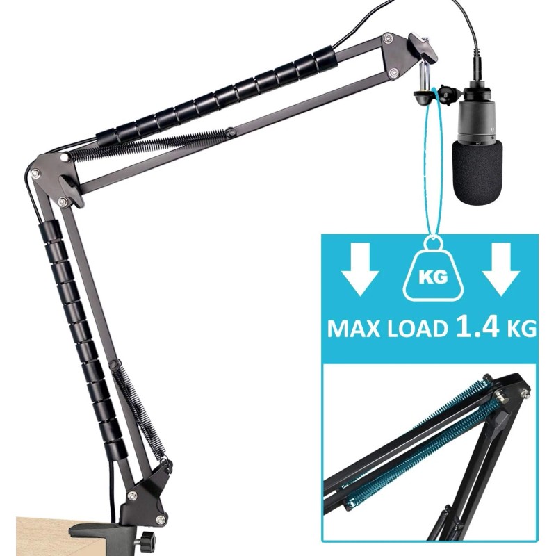 - Perfect Boom Arm: Suspension boom arm stand fit your Audio-Technica AT2020 Mic suitable. Max support weight is 3 Pound (1.4 KG). Easily adjust the mic to the suitable angle or height.