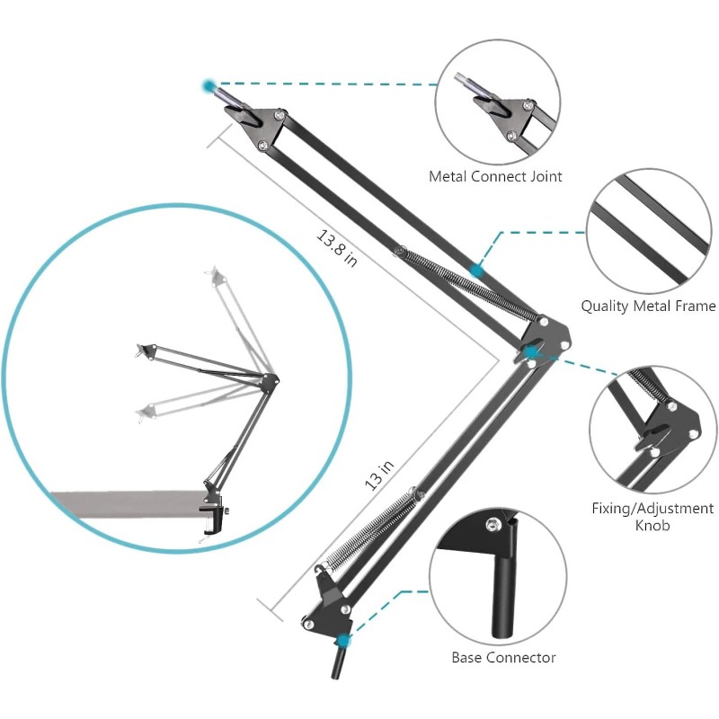 - Stability: Mic boom arm is dual suspension springs on each boom arm, prevent the microphone from shaking, sinking and making noise.