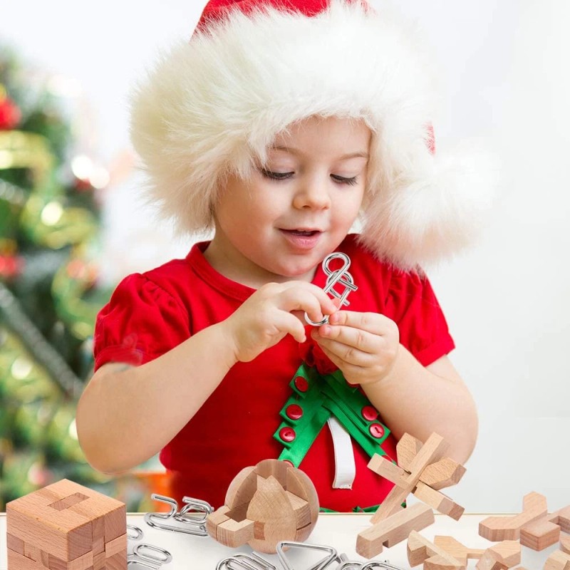- đ3D Coil Cast and Wooden Blocks Logic Educational Wire Chain with Plastic Storage Box and Solutions - Great gift for boys, girls, men, and women ages 5 to 105. The perfect size makes it easy for small and large hands to play comfortably. Everyone can enjoy these unique novelty gifts, from children, teens, and adults. CAn be played by a single player or a group. Give as gifts for birthdays, Halloween, Christmas, as well as party favors. Caution, not suitable for kids 5 years old and below.